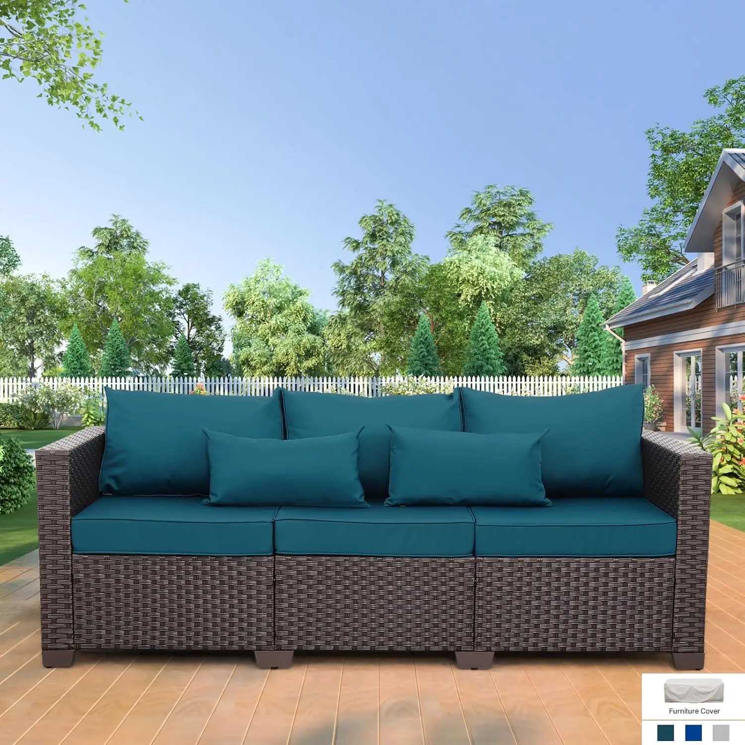 Luxurious 3-Seater Outdoor Wicker Sofa with Deep Cushions and Waterproof Cover