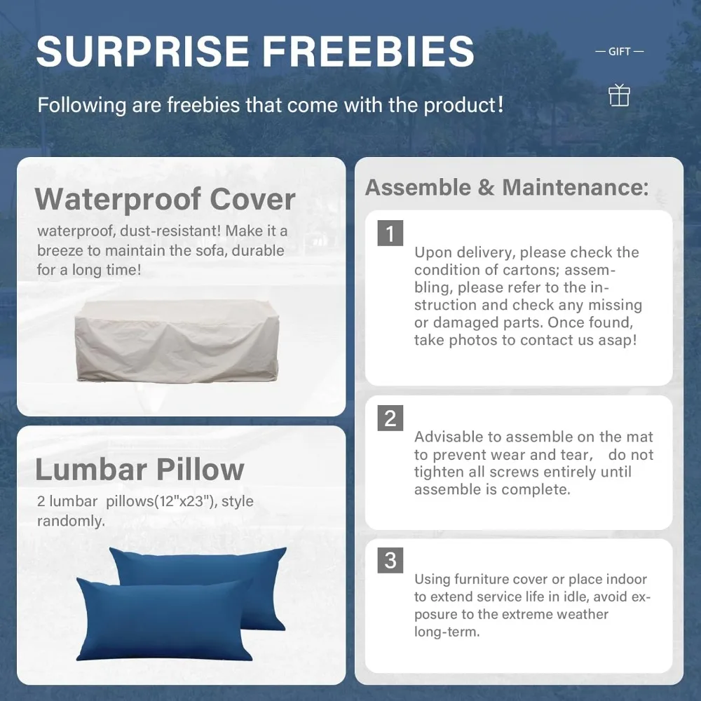 • Non-slip cushions and a waterproof cover for all-weather protection